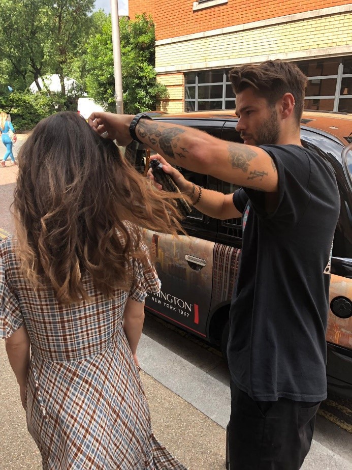 Our plan was to offer a free Black Cab service to journalists to help them get to and from all the exciting events in their calendar. What’s more, we stationed professional hair stylist and brand ambassador, Kieran Tudor, in the cab with all our new season products so he could style hair on-the-go!