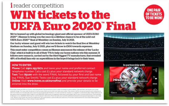 By offering just one pair of tickets to the EURO 2020 final, we secured front page national paper presence for Hisense in the Daily Mail, as well as coverage in the Mail Online, the i paper and i News online – a combined reach of almost 90 million. Score. Not only did this include the ticket comp, but the content also included images of Hisense’s hero EURO 2020 TV and a news story  from research we’d completed around fan superstitions to support lucky chip creative campaign profile. So, those people who missed out on the comp win had the Hisense TV front of mind when they were searching for a new screen.