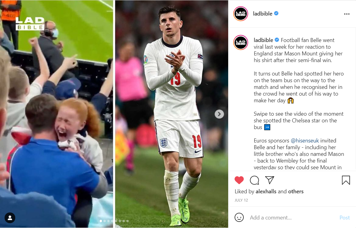 Following the viral video of Belle McNally receiving Mason Mount’s shirt at the semi-finals and media appearances on BBC Breakfast, we decided to make Belle Hisense’s “Lucky Chip” for the final match.