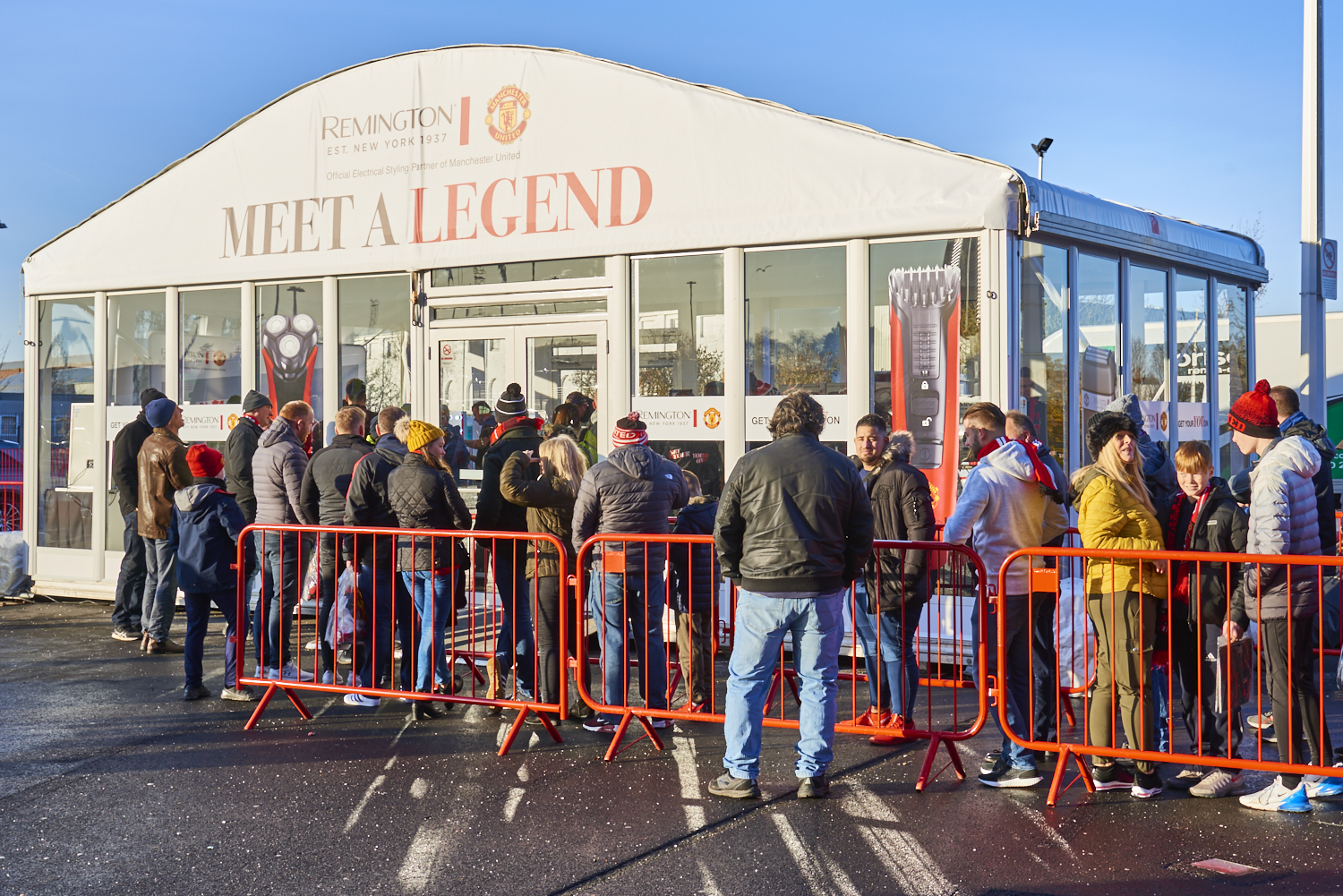 On match day, we set up a unique activation zone outside the Sir Alex Ferguson Stand – a branded structure which hosted a variety of activities to engage fans and raise their awareness of the partnership. From free styling and cuts, free laser engraving and a social activation pod where fans could meet club legend, Wes Brown! Importantly, a full display of the co-branded products was made available for purchase on the day.