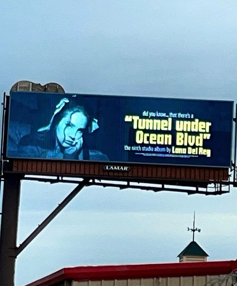 Lana has installed a single billboard to push her forthcoming album, “Did You Know That There’s a Tunnel Under Ocean Blvd”.